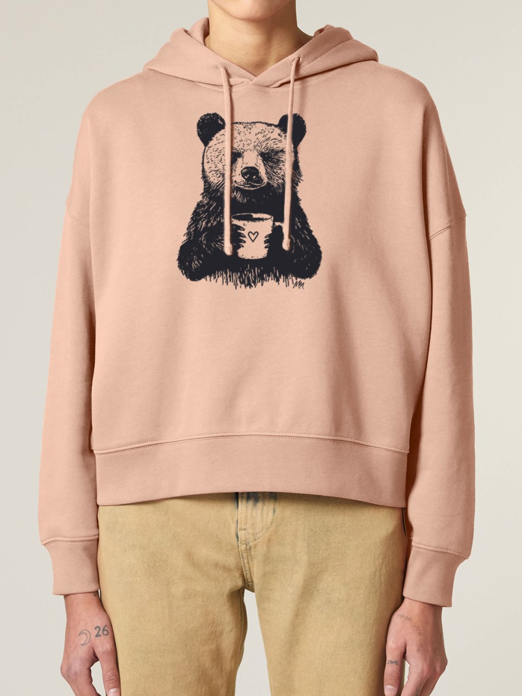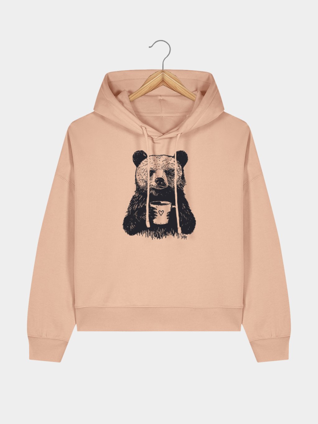 Dámská crop mikina s kapucí Bear & Brew · Broskvová