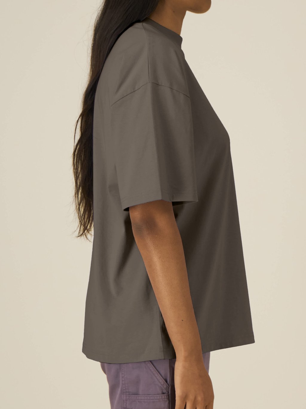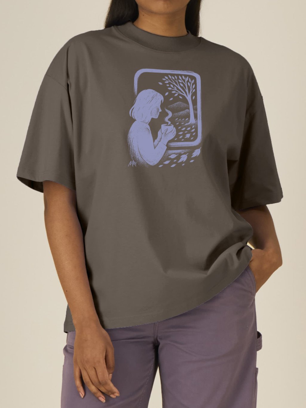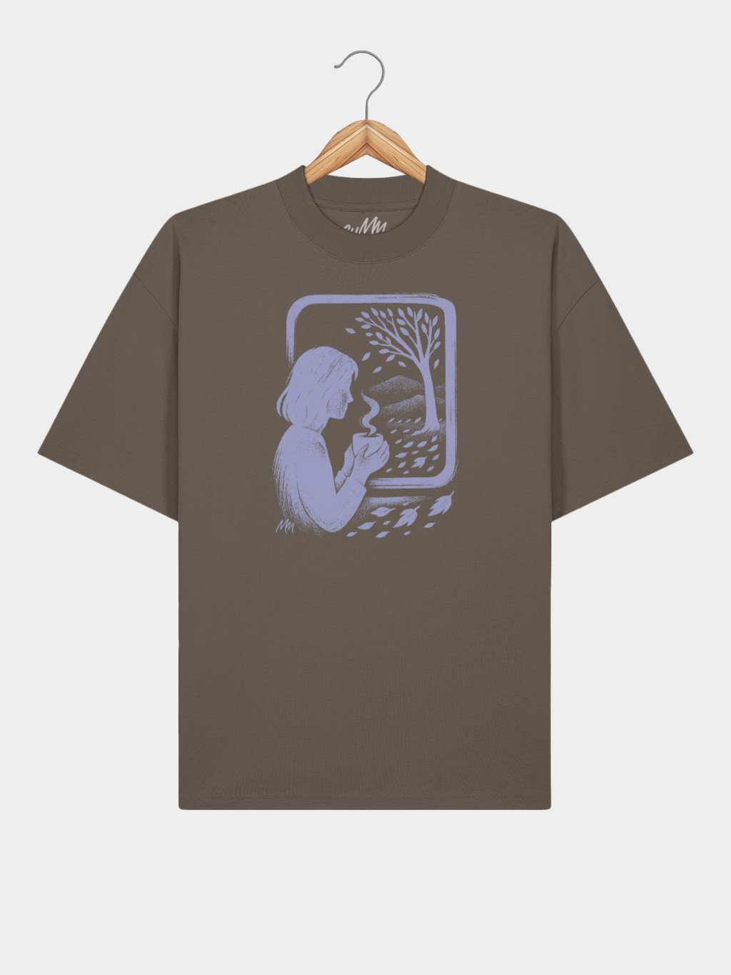 Dámské oversized tričko s vysokým límcem Tiché ráno · Hnědá mocha