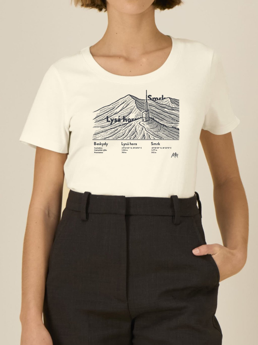 Dámské fitted tričko Beskydy / Lysá hora · Krémová