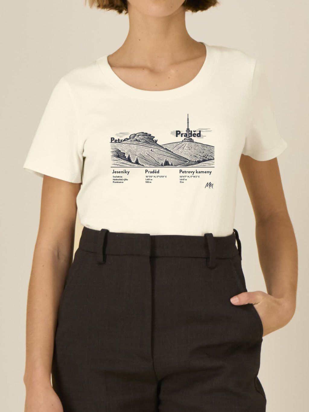 Dámské fitted tričko Jeseníky / Praděd · Krémová