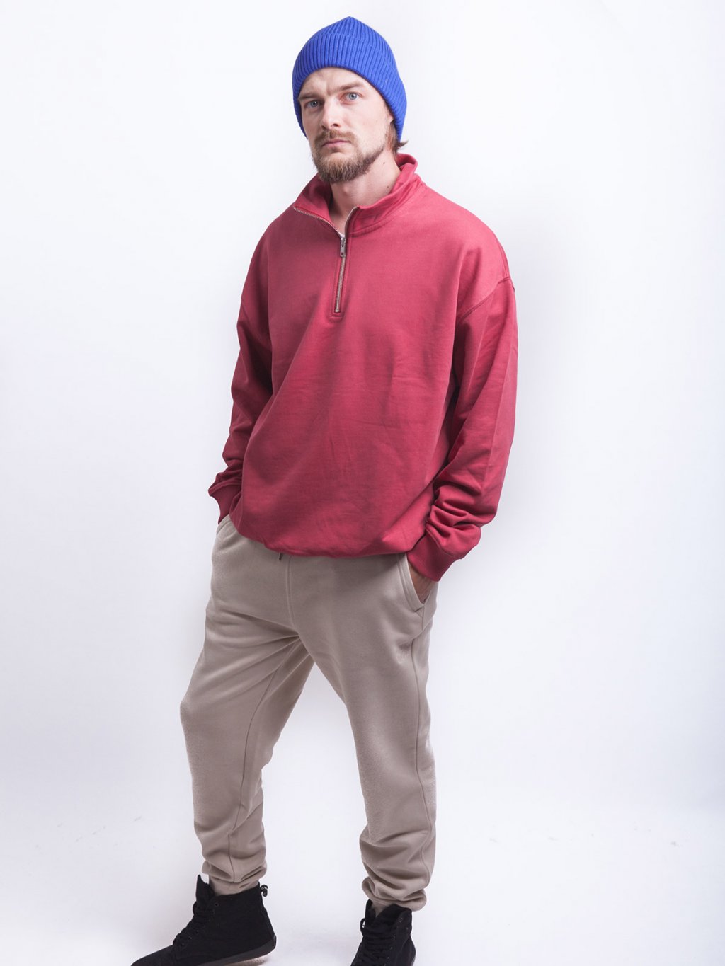 Pánská Dry-Feel Basic oversized mikina s krátkým zipem · Červená earth