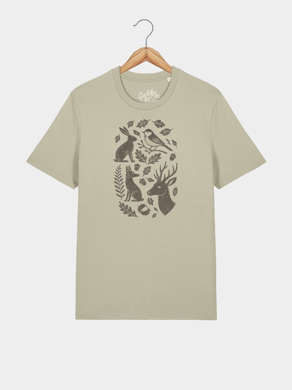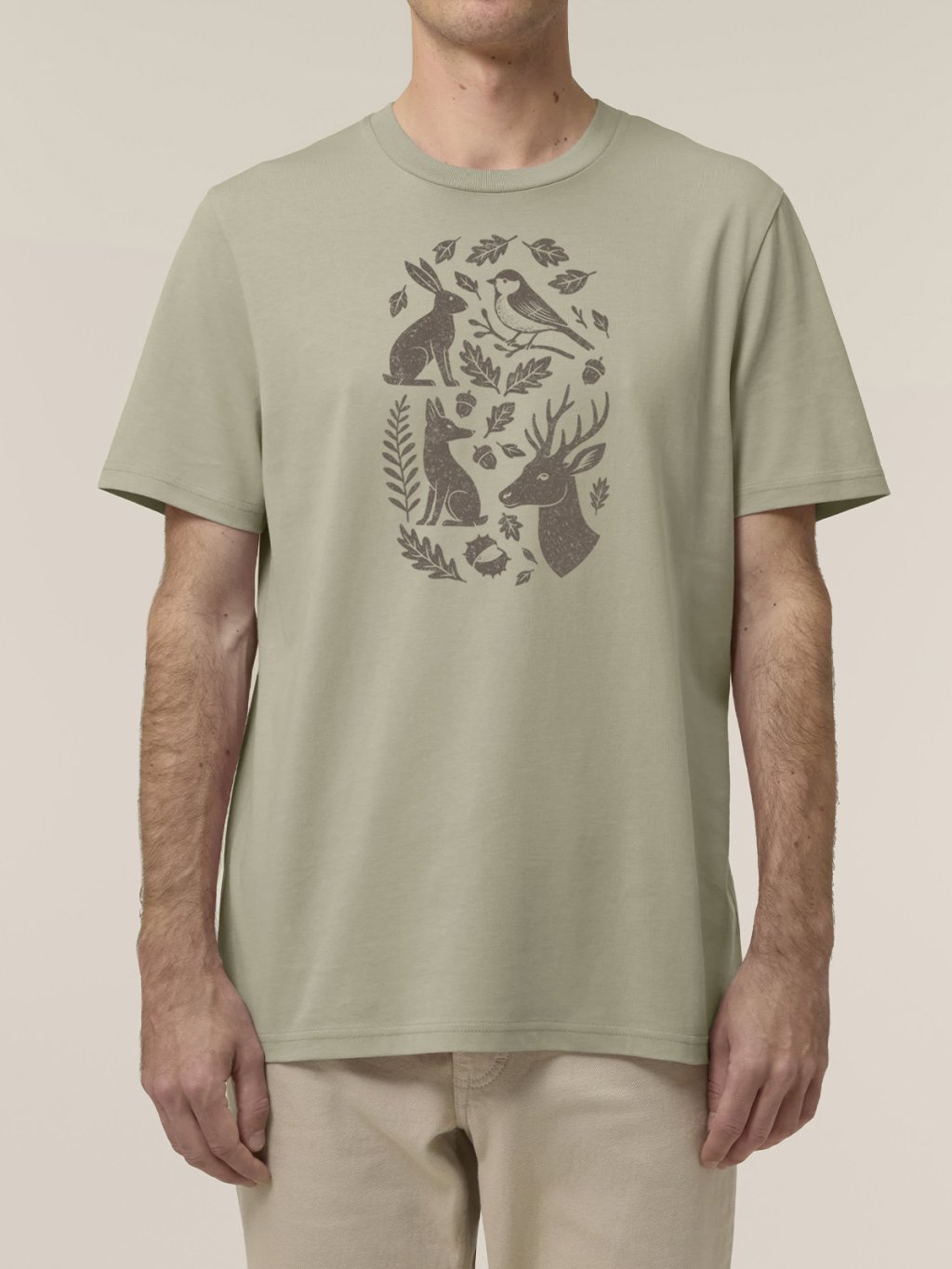 Pánské tričko z biobavlny Přátelé lesa · Šedá šalvěj