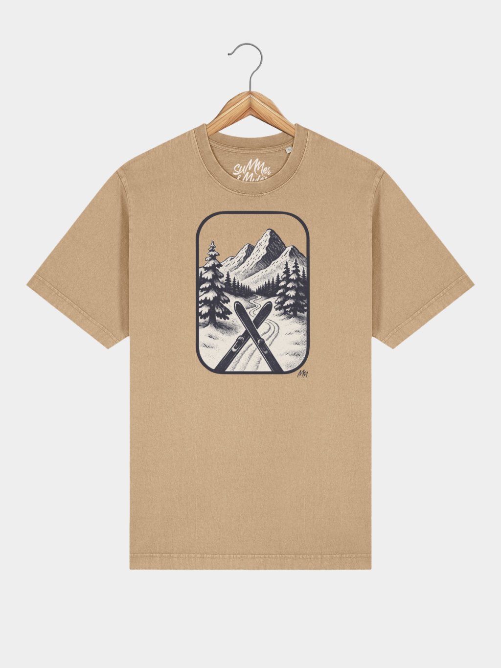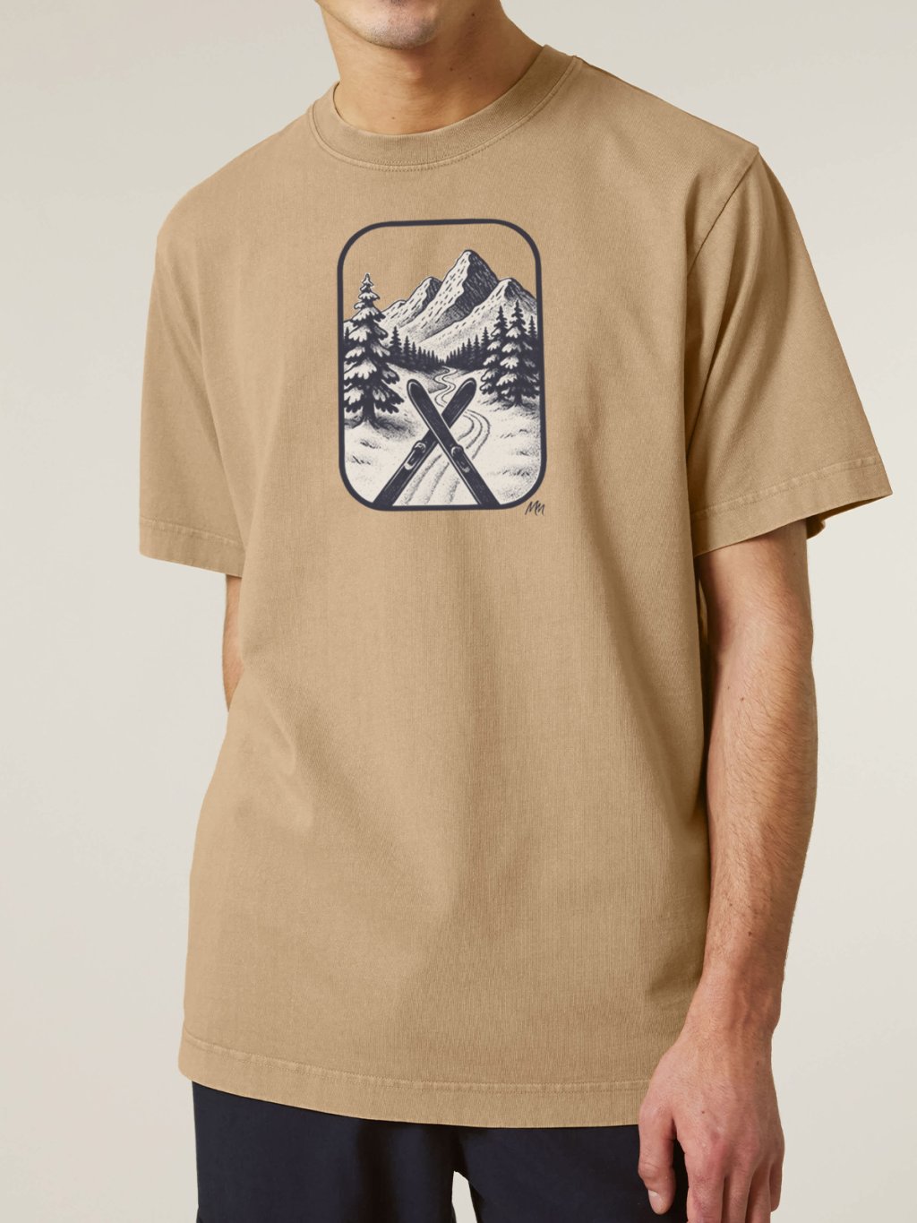 Pánské vintage heavy oversized tričko Moonlit slopes · Hnědá latte